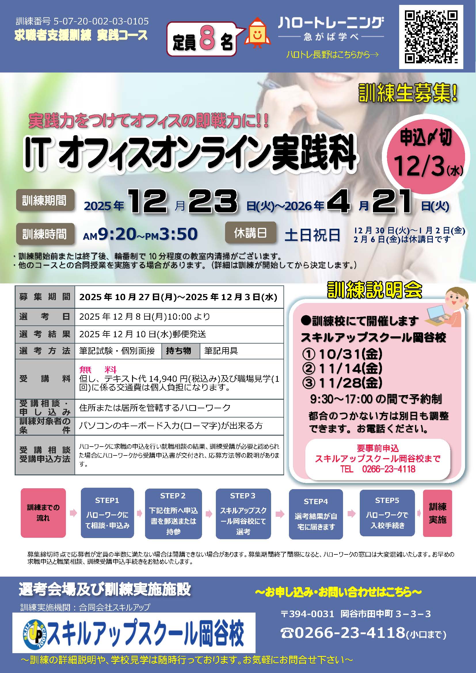 職業訓練 ITオフィスオンライン実践科 12月コース