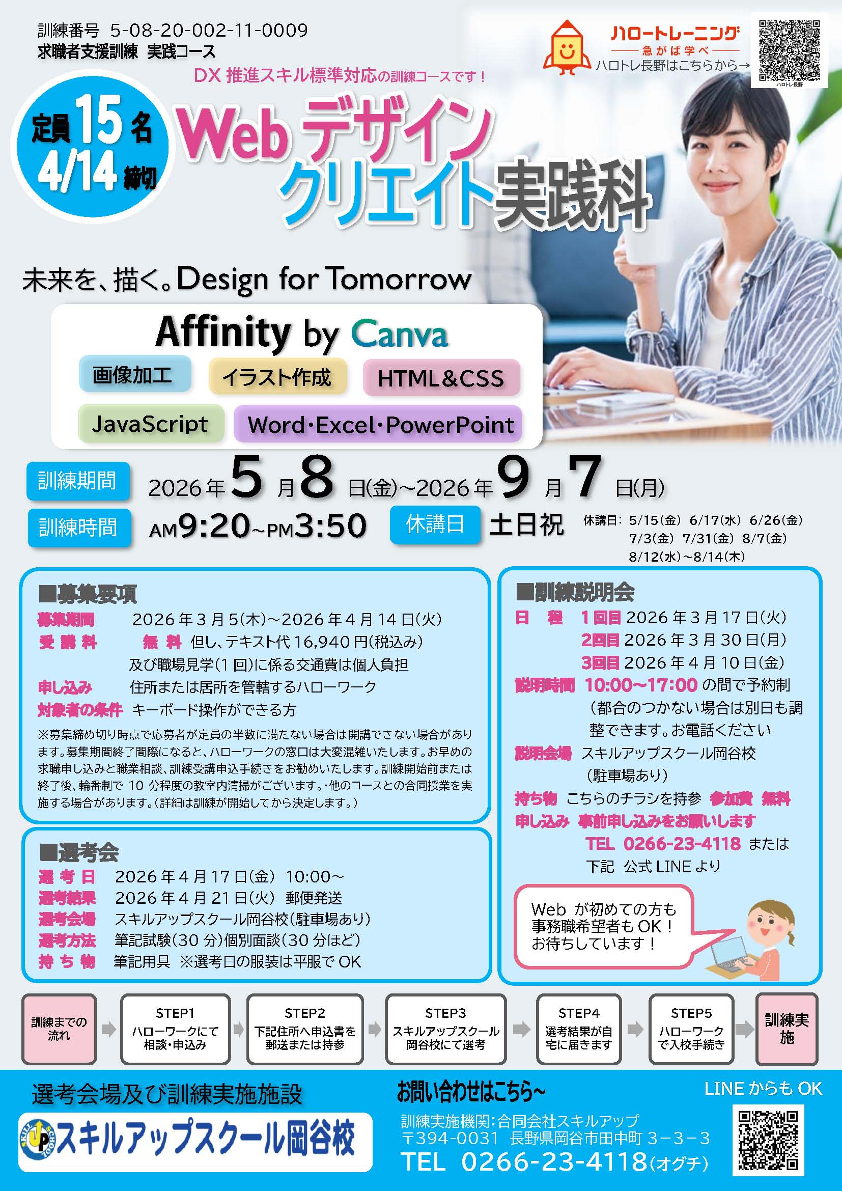 affinity&canvaを使用したWebデザイン科です!申し込みは管轄のハローワークへ。お問い合わせはフォームよりお願いします